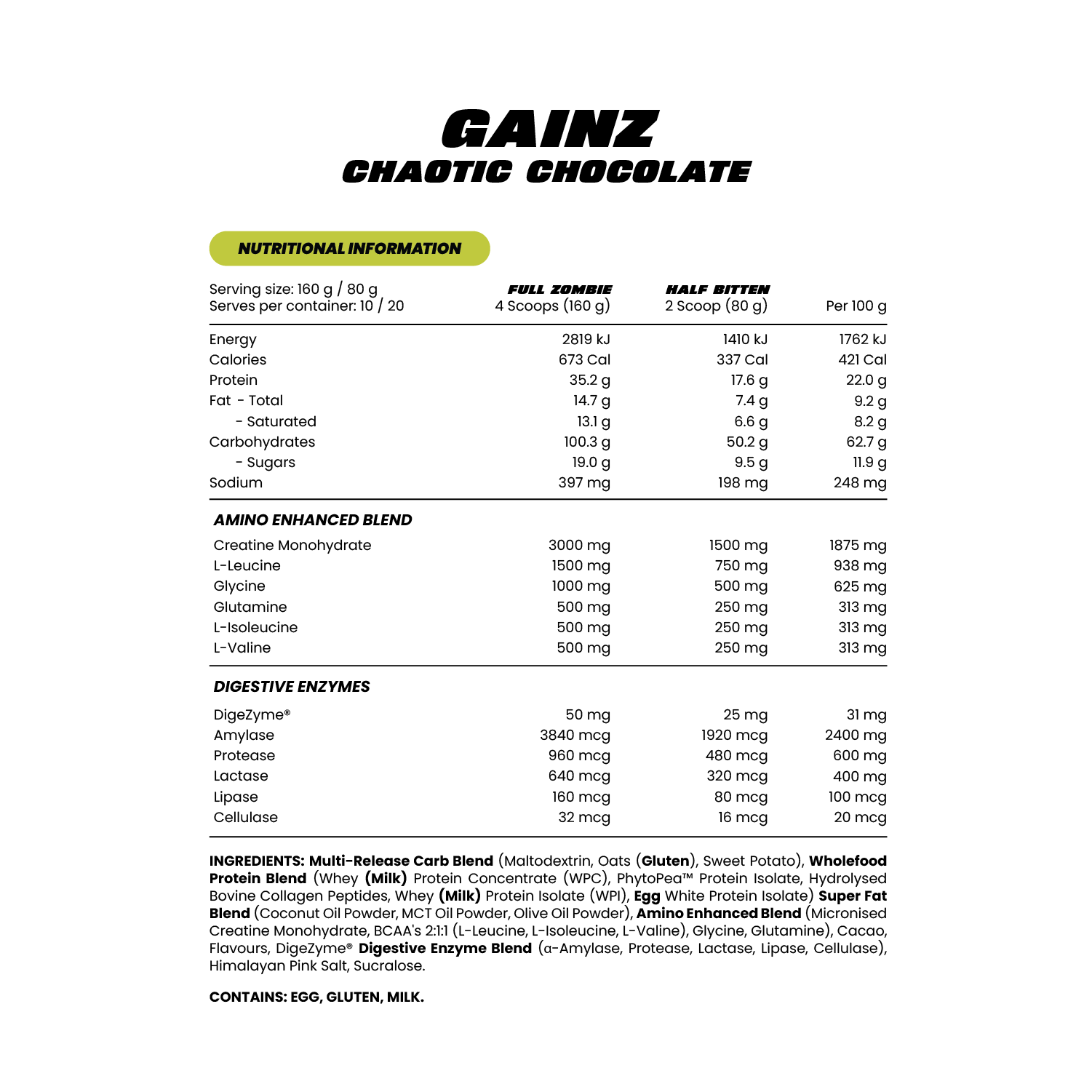 Key Additions | Creatine, BCAAs, DigeZyme® |